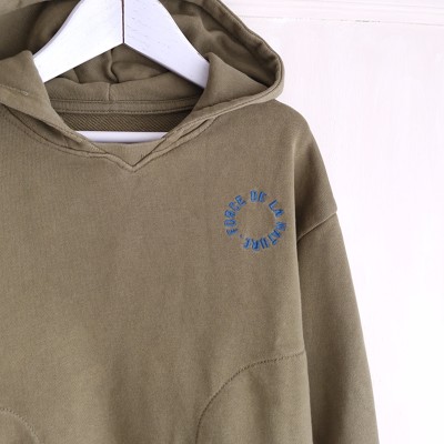 Sweat à capuche kaki Monoprix kids. Un petit accroc à l'intérieur qui ne se voit pas porté ( voir dernière photo ). 5 ans. 8 euros.
